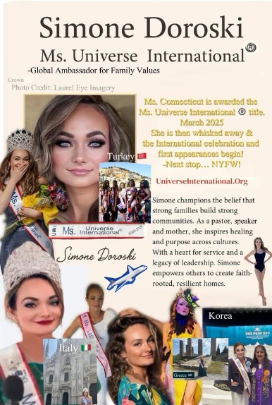 One of the most visible chapters in her story came when she stepped onto the international stage and was crowned Ms. Universe International 2025–2026. More than a title, the platform became a global microphone for her mission — advocating for women’s empowerment, strong family values, and service-driven leadership.